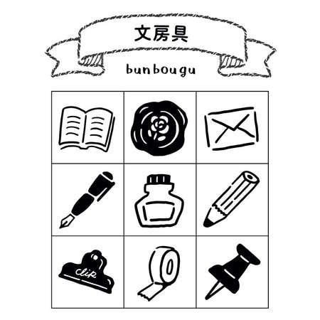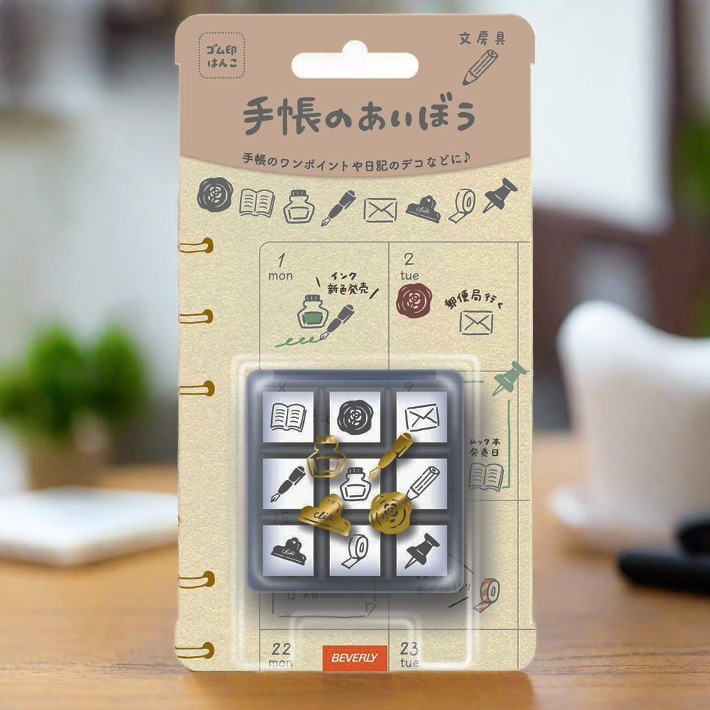 For a cute focal point in your calendar, or decoration for your notebook these thematic rubber stamps are a must have! This set features cute stationery items such as envelopes, washi tape, fountain pens, notebooks, ink bottles, pencils, pins, and clips.