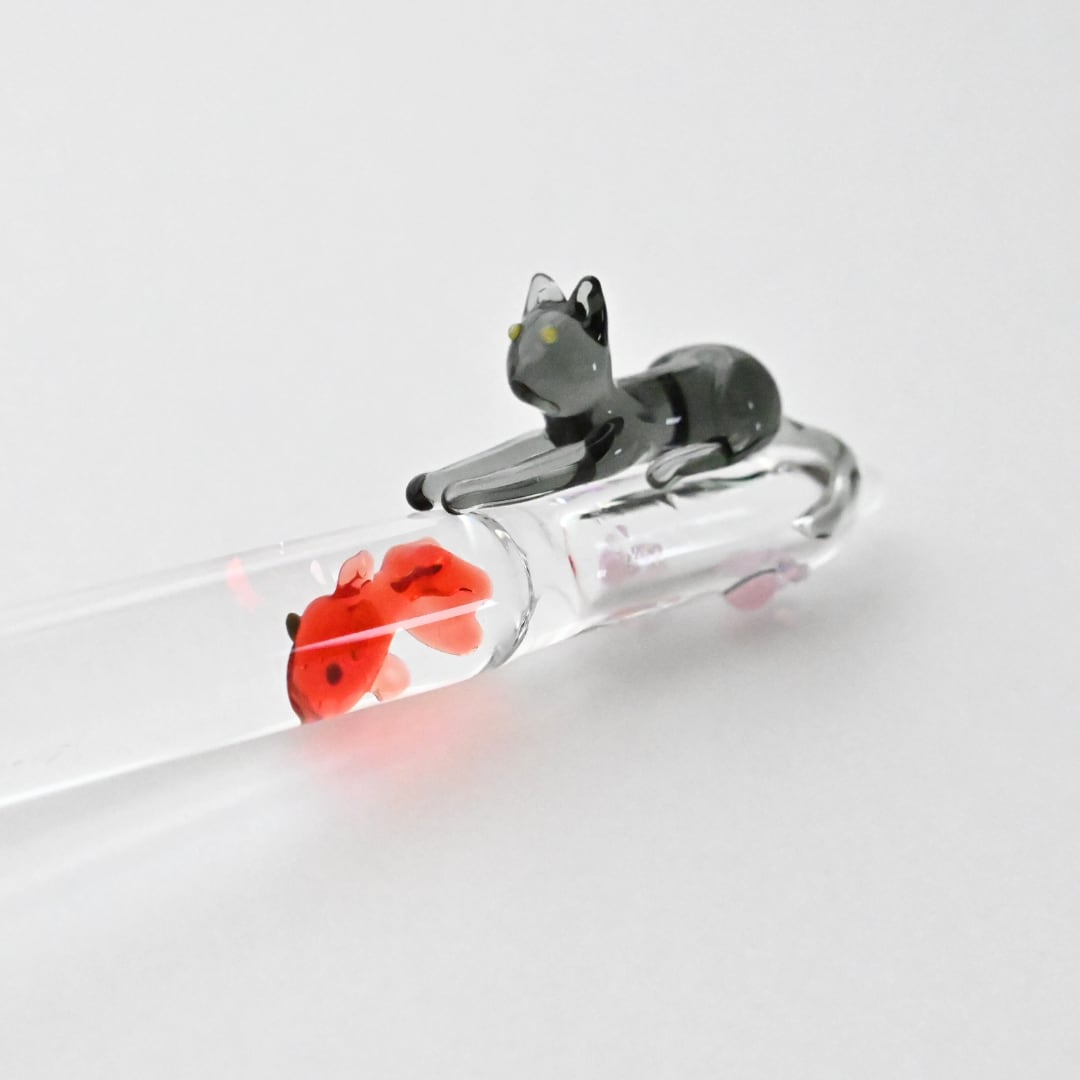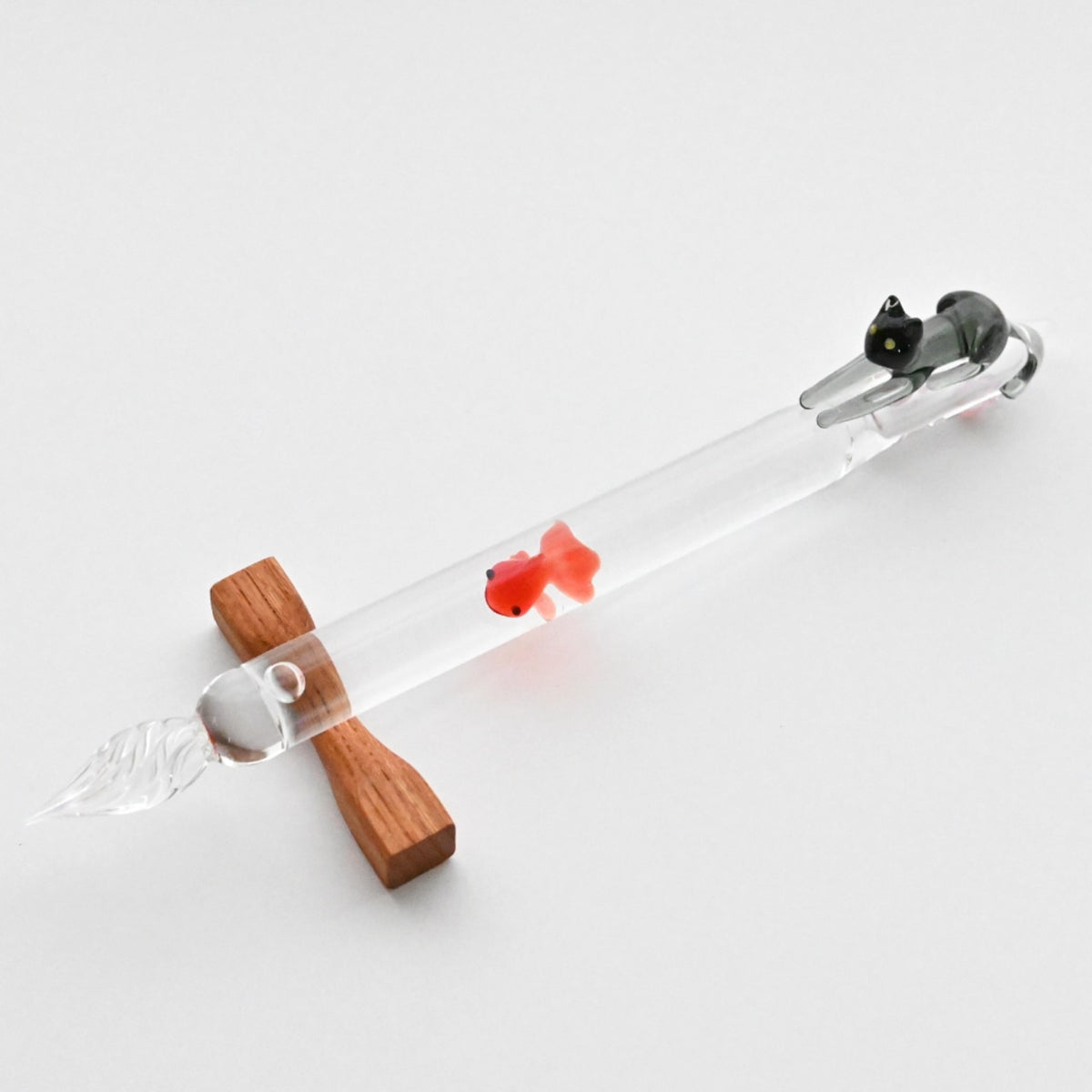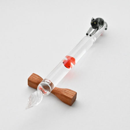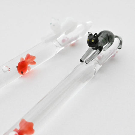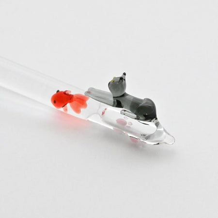 Clarto Lavie Cat & Goldfish Glass Dip Pen - Black Cat