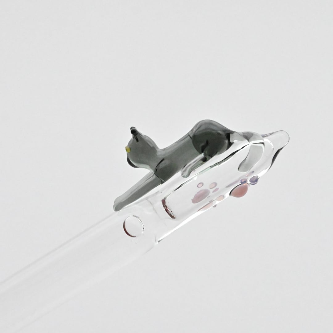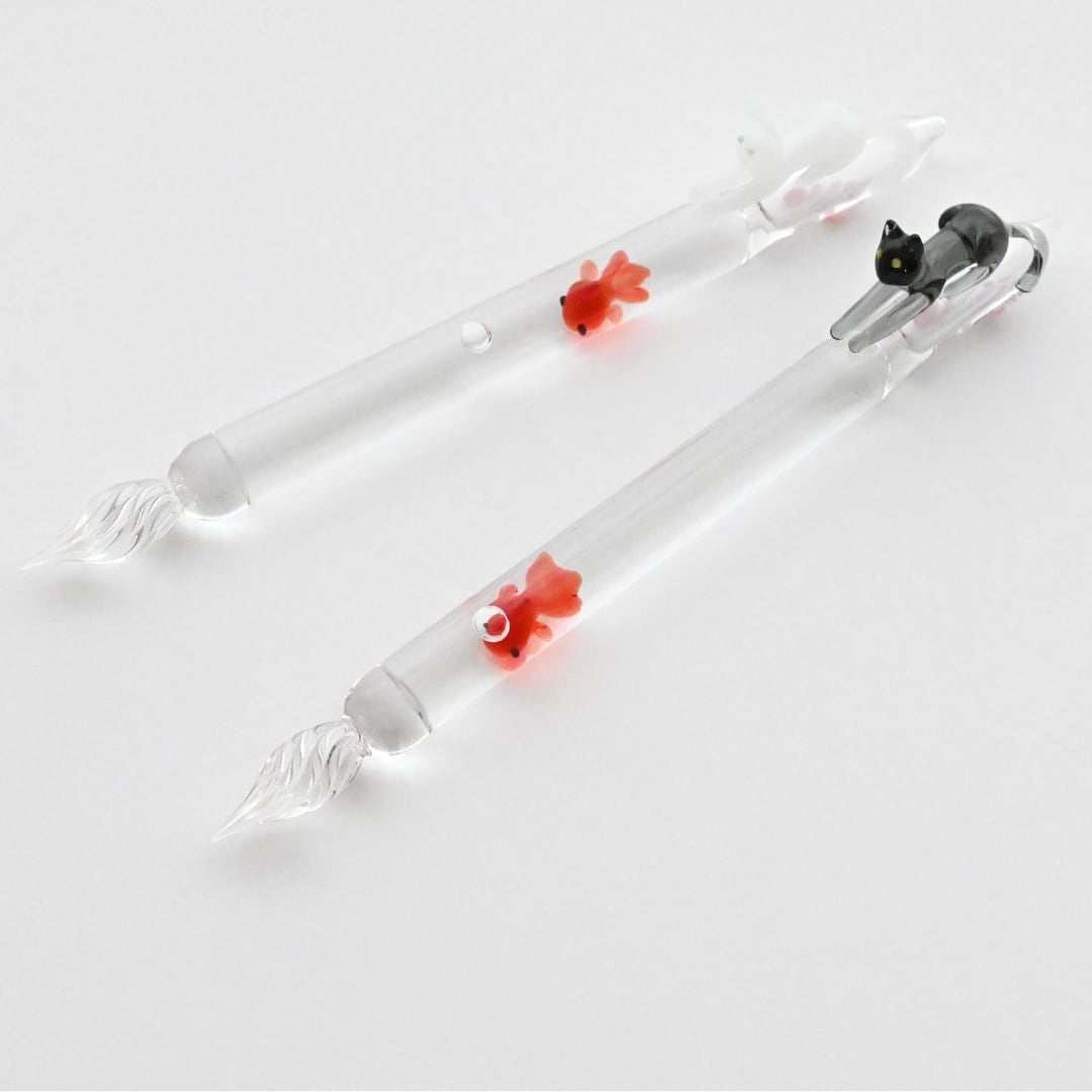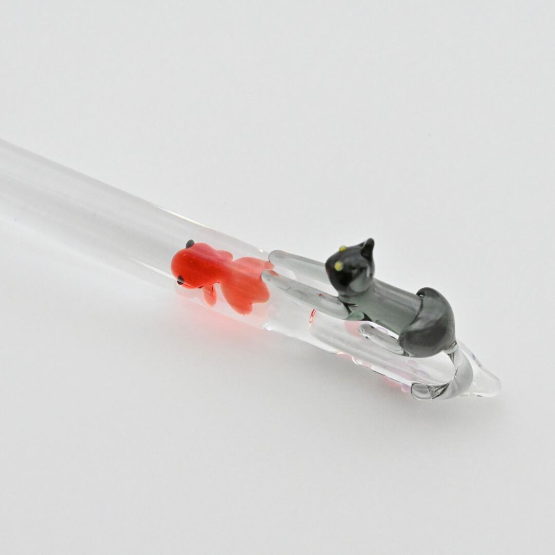 Clarto Lavie Cat & Goldfish Glass Dip Pen - Black Cat