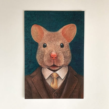 A postcard with a sophisticated mouse motif. High-quality fine paper for smooth writing (writing with fountain pens may cause smearing). The back of the postcard has space for horizontal writing and their is a small template featuring a mouse where the stamp should be placed.