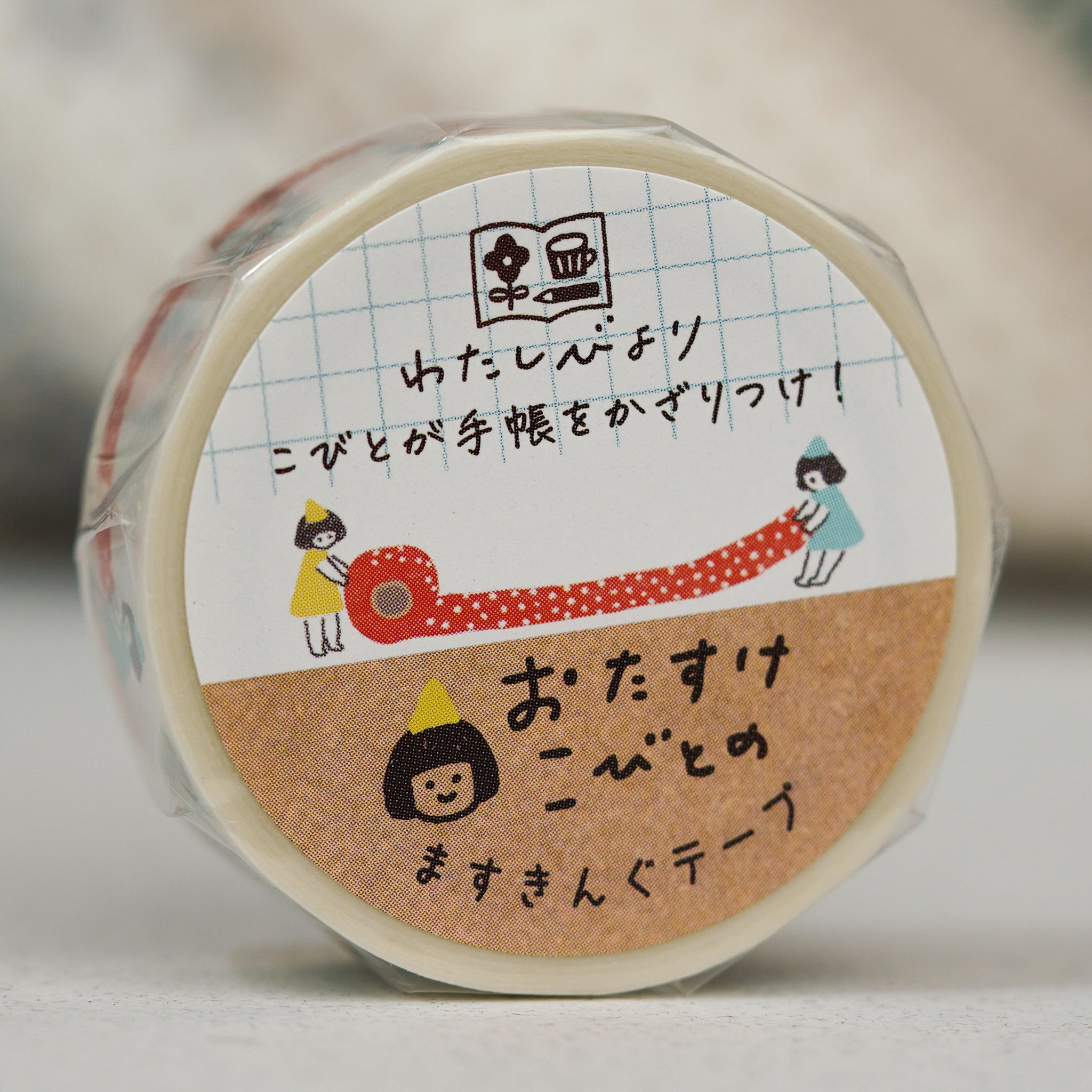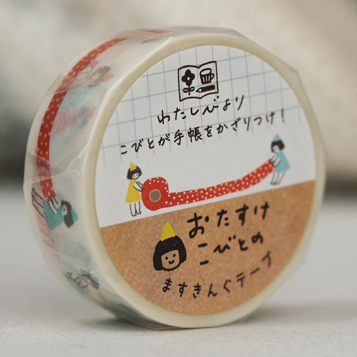 This design small people rolling out large rolls of patterned washi tapes!