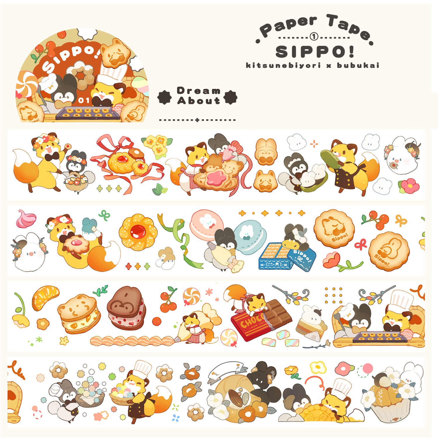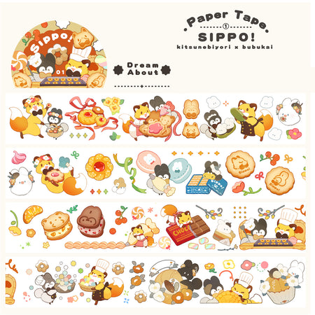 KitsuneBiyori x Sippo! Washi Tape Roll - Sweet Dream Bakery (55mm x 10m)