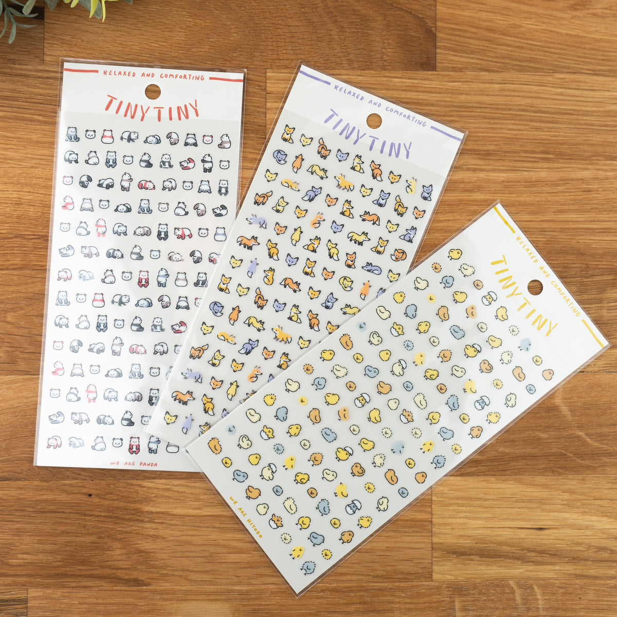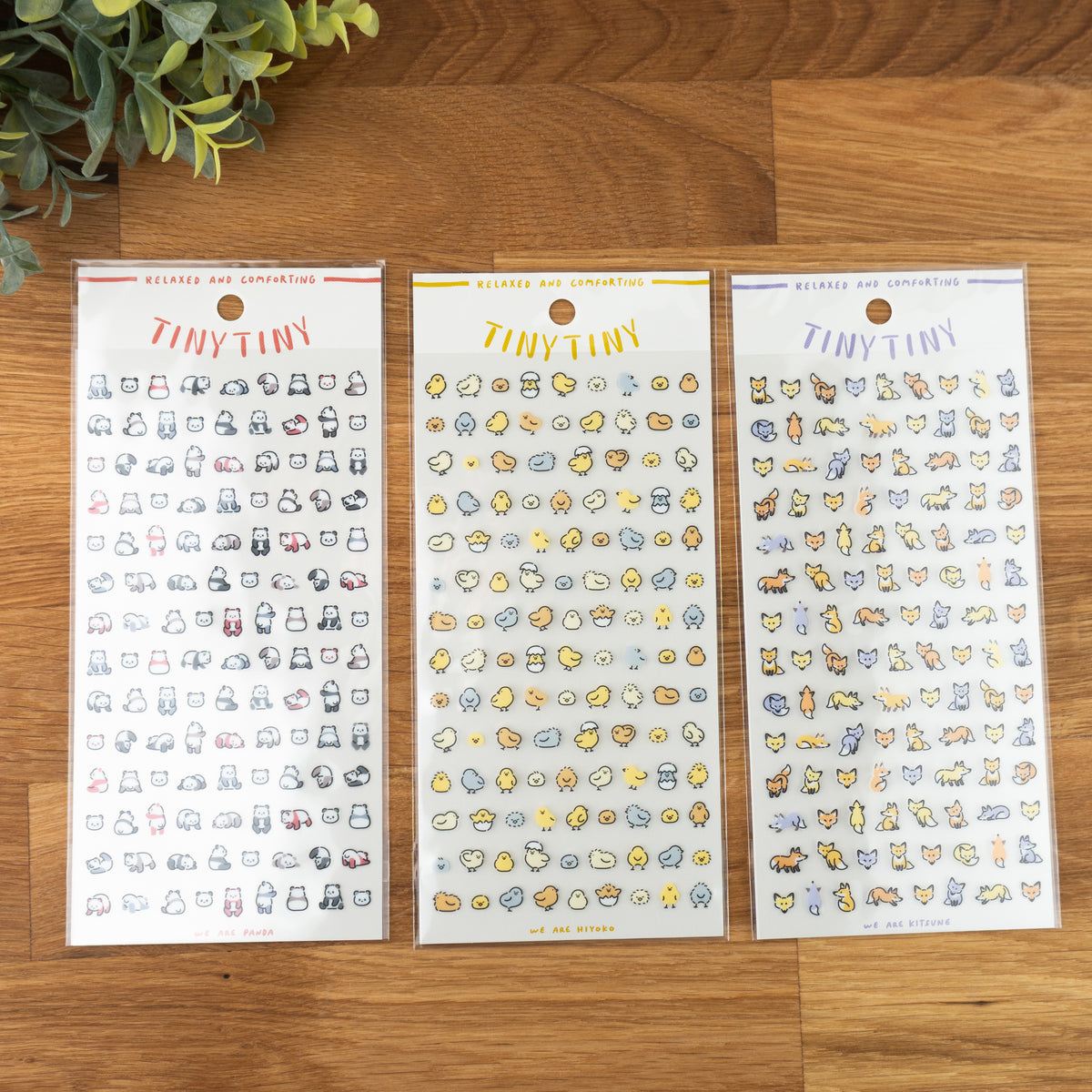 The popular Tiny Tiny sticker series is back with a second Volume. They are now available in Fox, Panda, and Chick designs. These tiny stickers are perfect for fitting anywhere! They have bold line art which makes them look clear even with their small size. They are clear which helps them blend into wherever they are placed. Made in Japan.