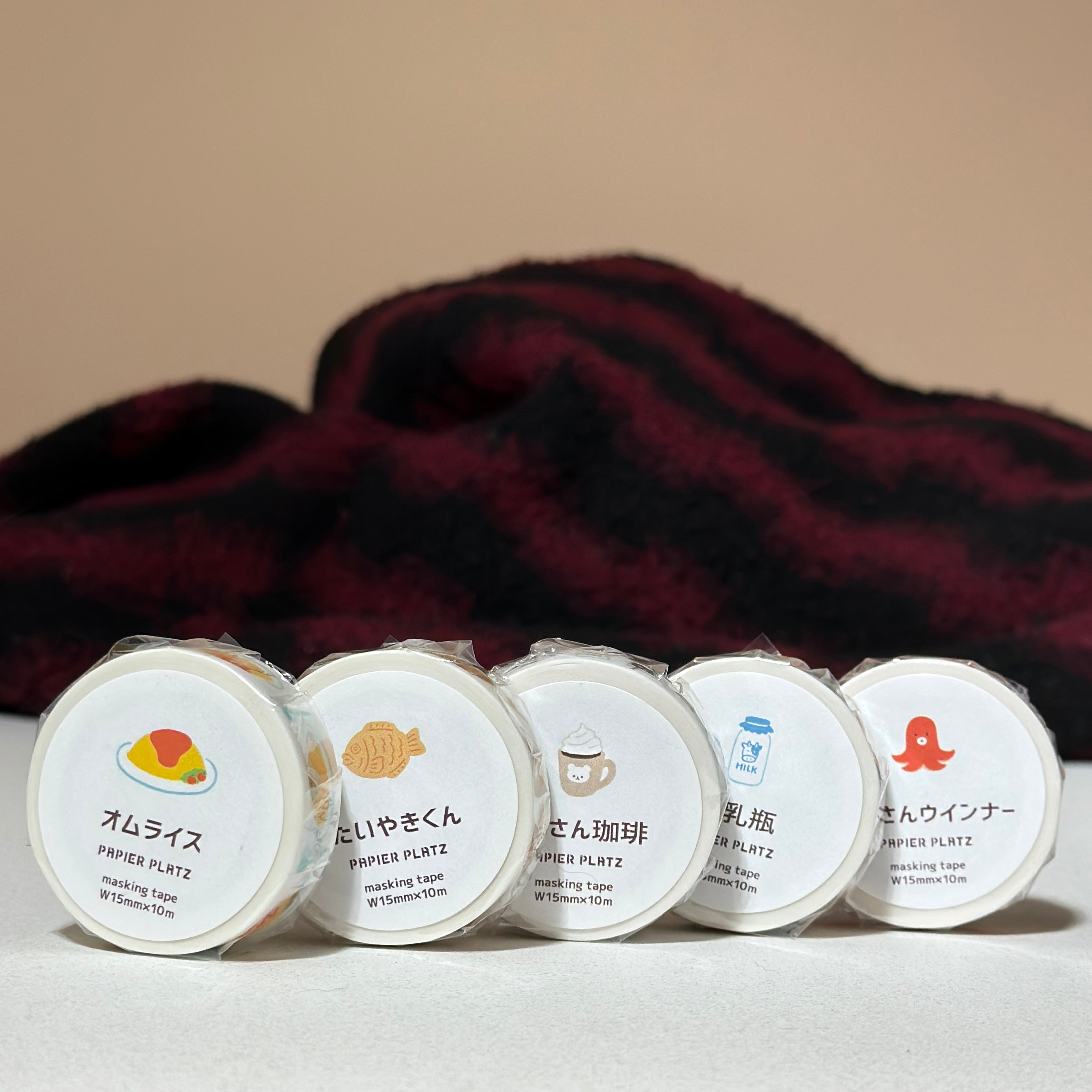 This series of washi tapes by Papier Platz features various food items with a white background. The white background blends in with the paper of your notebook and planner for a neat effect!