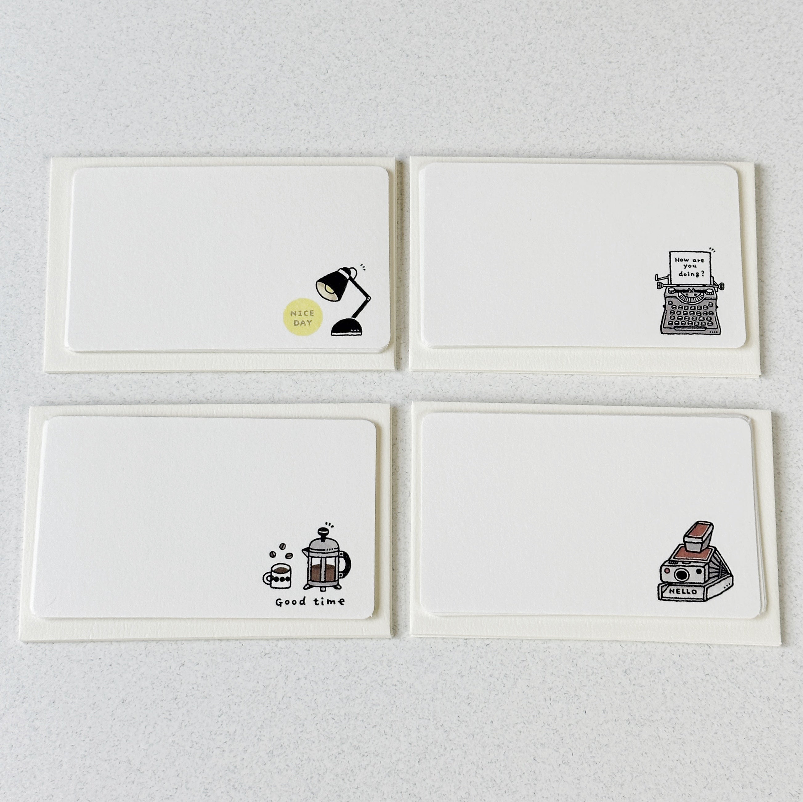 Life is about the little things! Write a small note to a loved one on these high quality mini letter sets. I also like to adhere these cards into my journal as a decoration. Each set comes with 4 mini envelopes and 8 cards. This item is approximately 63 × 100 mm (2.5'' × 3.9''). Made in Japan.