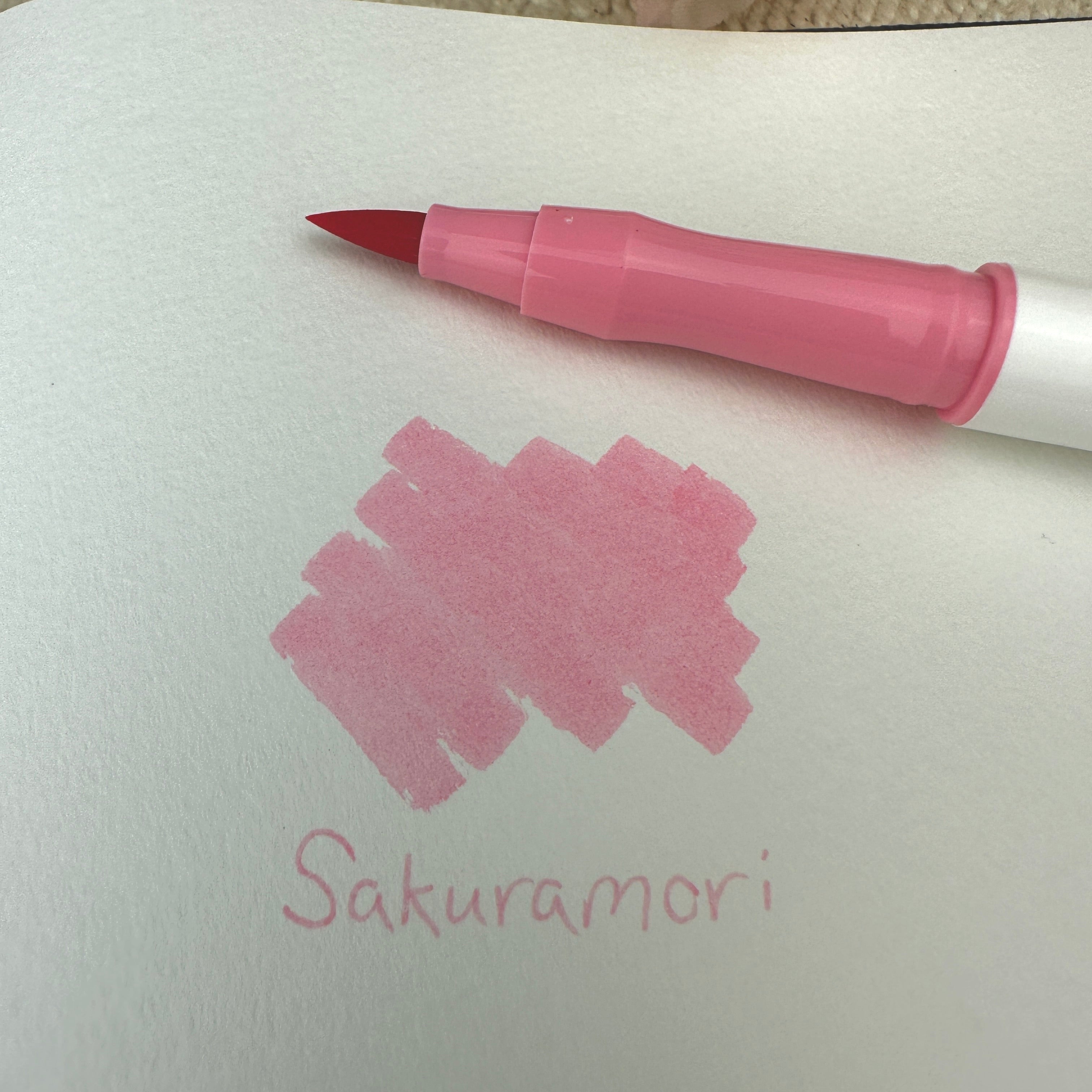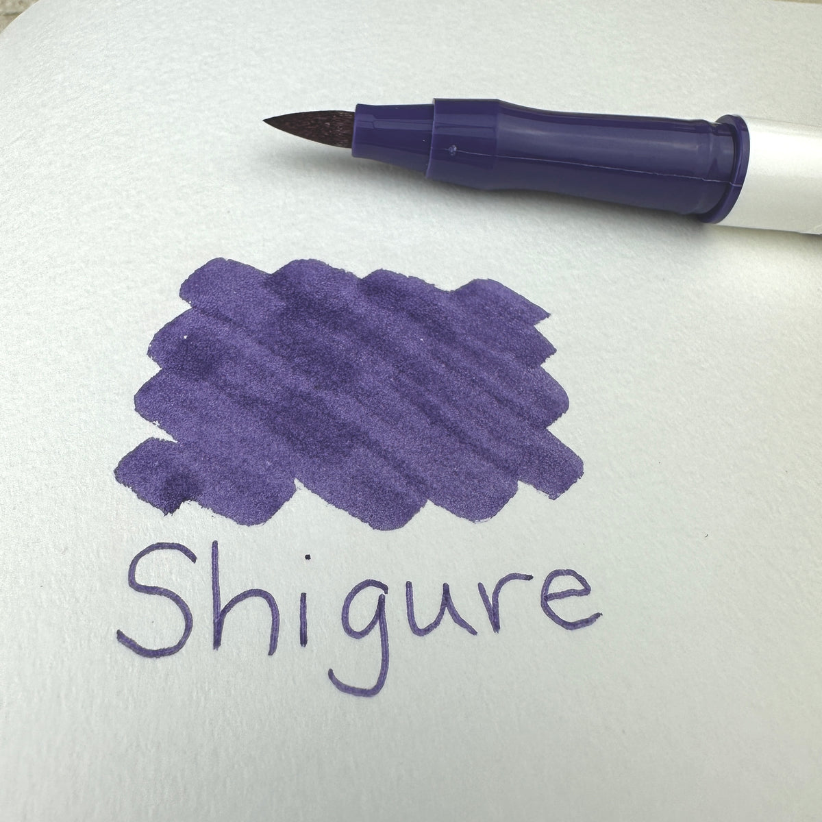 These dual tipped pens are filled with Sailor Shikiori fountain pen ink! One side features a brush pen while the other side is a fine plastic point. The water based ink formula will leave smooth vibrant lines.